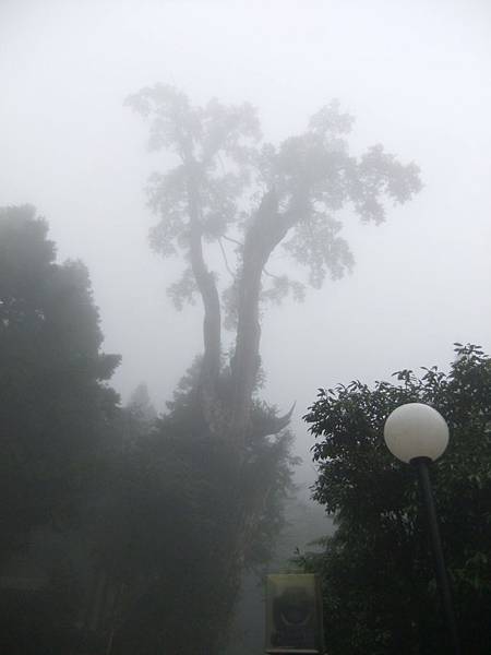 從山莊出來沒多久就可以看到隱藏在霧中的神木,不過連牌子都很難看清字:P